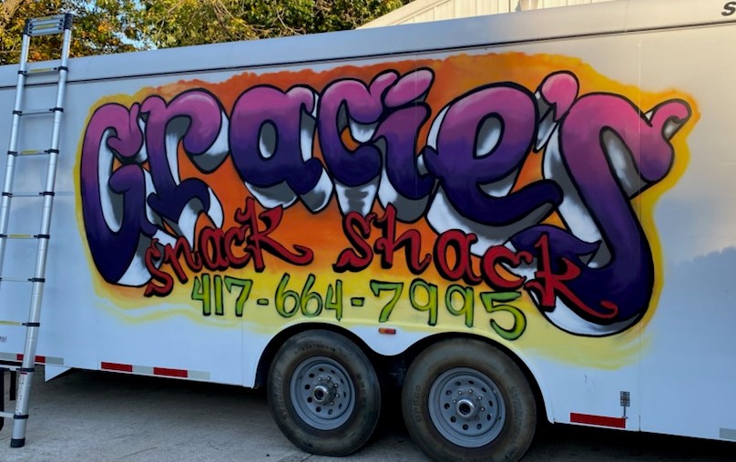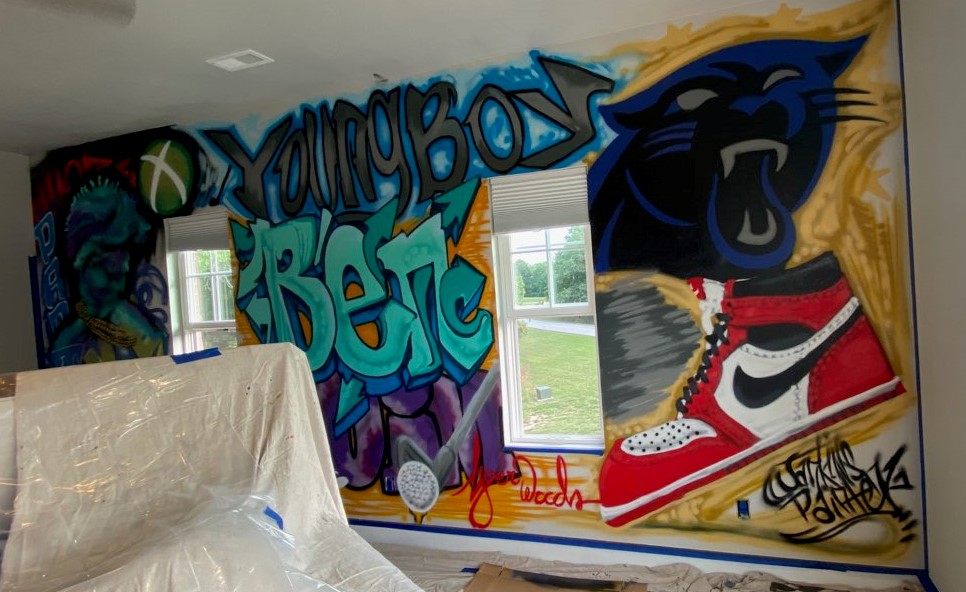 Gpa Jankins is a graffiti artist from Springfield, MO. After years of recreational activity he began to receive more and more requests for his artwork to be applied to businesses throughout Springfield and the surrounding areas. His work has been requested at schools, skate-parks, auto body shops, sheds/garages, kids bedrooms, and even gun shops. No job is too big or too small, he loves to paint anything, anywhere. His work can be seen on personalized hats and t-shirts, as well as any other surface he can get his hands on. The love for art runs deep, whether it is drawing, painting, or sculpting. When it comes to someone wanting something done there is no preconceived notion about what can and can’t be done, he will make it happen for them.